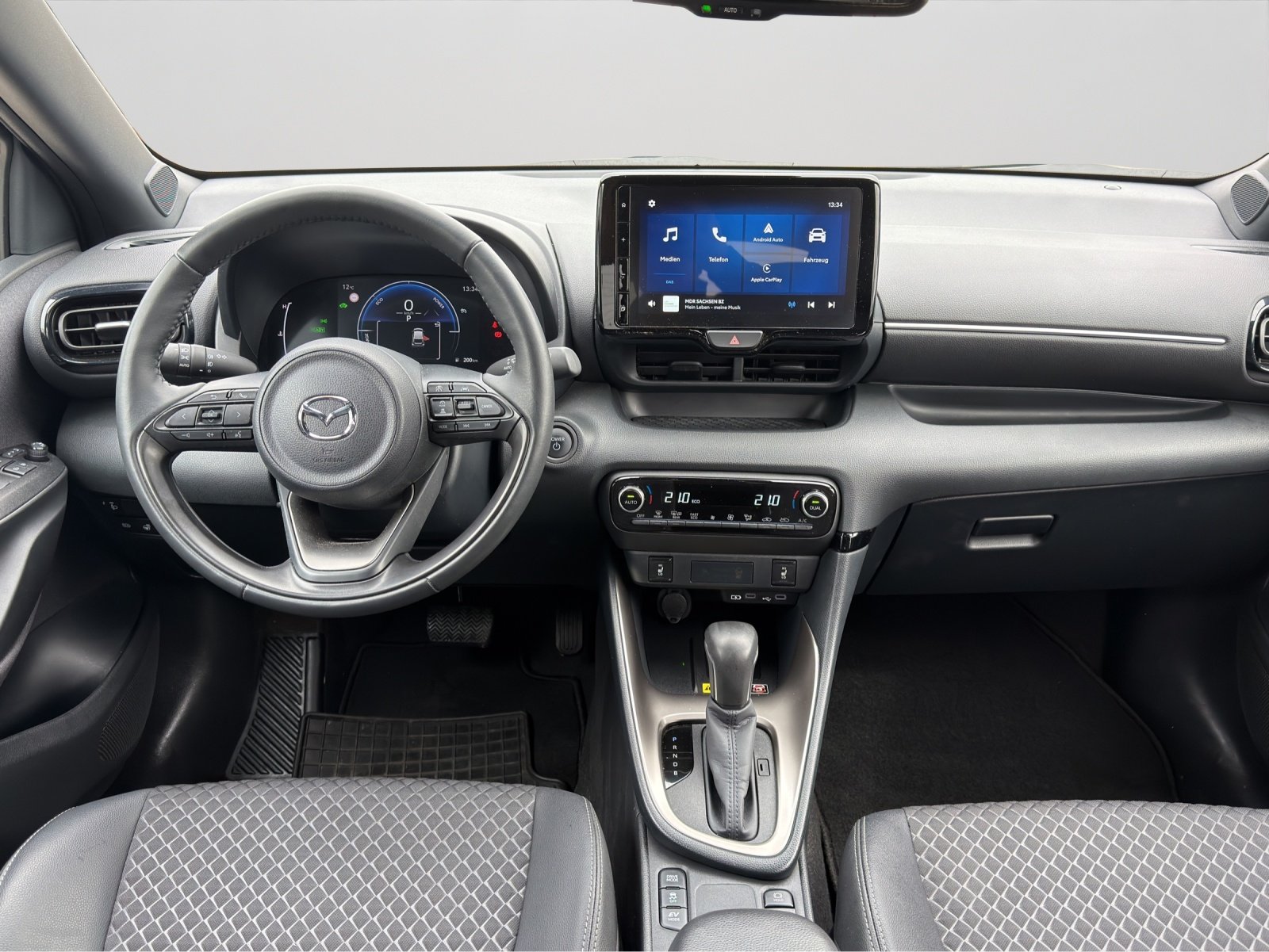 Reifenreparaturset,Verkehrszeichenerkennung,8 Airbags,ABS,Start/Stop,Metallic Lackierung,Nebelscheinwerfer,Dachspoiler,Isofix,Audio-Fernbedienung am Lenkrad,Tagfahrlicht,Geschwindigkeitsbegrenzer,Partikelfilter,RDS Audio-Anlage Digitalradio, Touch Screen und Farbdisplay,Getränkehalter für Vordersitze,Getrennte Belüftungsregelung für Beifahrerseite mit digitaler Anzeige,Hauptservice Gesamtfahrleistung (km): 30000 und Zeitraum (Monate): 24,Multi-Funktions-Monitor mit 7,00 Zoll Bildschirm Kombi-Instrumente 1 und Bildschirmgröße (cm):, Multi-Funktions-Monitor,Laderaumabdeckung flexibel,LED Hauptscheinwerfer mit Ellipsoid-Streuscheibe LED,Kopf-/Dach Airbag vorn und hinten,Media-Anschlüsse USB vorne, Anzahl USB vorne: 1, Anzahl USBhinten: 0 und Anzahl USB 3 Reihe: 0,Luxus-Ausstattung: Alu & Leder, Alu-Look Bodenkonsole, Wolle auf Türverkleidungen,Sicherheitsgurte hinten mit Gurtstraffer links, Sicherheitsgurte hinten mit Gurtstraffer rechts, Dreipunkt-Gurt hinten M,Sicherheitsgurte vorn mit Gurthöhenverstellung für Fahrer und Beifahrer , Gurtstraffer vorne,Sichtschutzglas hinten und Seite hinten,Sitzbank hinten mit drei Sitzplätzen asymmetr umlegbar,Sitzbezüge: Stoff / synthetisches Leder,Sprachbedienung,Spurassistent aktiviert Lenkung,Sicherheitsgurt Warnanzeige 5,Intelligenter Geschwindigkeitsassistent,Garantie Elektroantrieb Dauer(Monate) 72, Gesamtfahrleistung (km) 150000 und Gesamtfahrleistung (Meilen) 93206,Gepäckraumvolumen: normal (l): 286, Frunk Kapazität (l):, Frunk Kapazität (cu ft):,Antriebs-Schlupf-Regelung,Garantie auf Batterie Dauer in Monaten: 72, Gesamtfahrleistung: 150000,Geschwindigkeitsregelanlage mit adaptive Geschwindigkeitsregelanlage stop & go Funktion,Tankinhalt 36 Liter,Hybridart Aktiv-Hybrid,Installierte Apps,Außenspiegel elektrisch einstellbar, beheizt, getönt auf Fahrerseite auf Beifahrerseite mit Fahrtrichtungsanzeige,Startknopf,Kabelloses Ladekissen,Klimaanlage mit 2 Klimatisierungszonen (vollautomatisch),Belüftungssystem mit digitaler Überwachung, Pollenfilter, Motorvorwärmer und elektrischerHeizung,Berganfahrassistent / Auto Hold,Bluetooth,Bordcomputer mit Durchschnittskraftstoffverbrauch,Bremsassistent,Crash Warnsystem aktiviert Sicherheitsgurte, aktiviert Bremslicht, Müdigkeitswarnung, automatische Notbremsung, Bremst b,Durchmesser (Zoll): 17 205 / 45 V auf Vorderachse und Hinterachse Tragfähigkeitsindex: 87und Sommerreifen,Einparkassistent hinten und Hilfslinien,Einparkhilfe vorne Sensor, Einparkhilfe hinten Sensor & Kamera,Zwischenservice Gesamtfahrleistung (km): 15000 und Zeitraum (Monate): 12,Fahrereinstellungen Motorcharakteristik und Traktionskontrolle,Frontairbag Mitte,Fahrersitz Sportsitz mit Sitzheizung, mechanischer Lehnenneigungsverstellung, mechanischer Längsverstellung, mechanisch,Reifendruckkontrolle Druckanzeige und Felgensensor,Mobiltelefonintegration AppleCarPlay, Android Auto, Apple Monate inklusive: 999, AndroidMonate inklusive: 999, Andere,Mobiltelefonvorbereitung Halterung und Ladefunktion,Elektrische Fensterheber mit Impulsschaltung für zwei Fenster vorn und hinten,Elektroantrieb-mit-Lithium-Ionen Batterie Batteriespannung:178,0, Batterie Ah: 4,3, Batterie kWh: 0,80, Anzahl Batterie,Elektromotor 1, 80,0 PS, 59,0kW, 141 Nm, AC permanent Magnet synchron und getriebeintegrierter Motorgenerator,Elektronische Fahrstabilitätskontrolle,Elektronische Handbremse,Fahrer-Airbag, Beifahrer-Airbag mit Deaktivierung für Beifahrerairbag,Notruf,Optik Schwarz um Seitenfenster,12V Steckdose vorne,4 Scheibenbremsen (2 innenbelüftet),App-Steuerung,Mazda2 Hybrid 15 HYBRID VVT-I HEV HOMURA AUTO 5 85 EH C,Lead Grey,Stoff/Kunstleder Schwarz, Diamant Muster,Alufelgen 7,0 X 17 auf Vorderachse und Hinterachse 43,2 und17,8,Ambientelicht,Anklappbare Außenspiegel,Autonomes Fahren 2 – teilautomatisiert, aktive Spurkontrolle und Stauassistent,Beleuchteter Make-up-Spiegel für Fahrer und Be